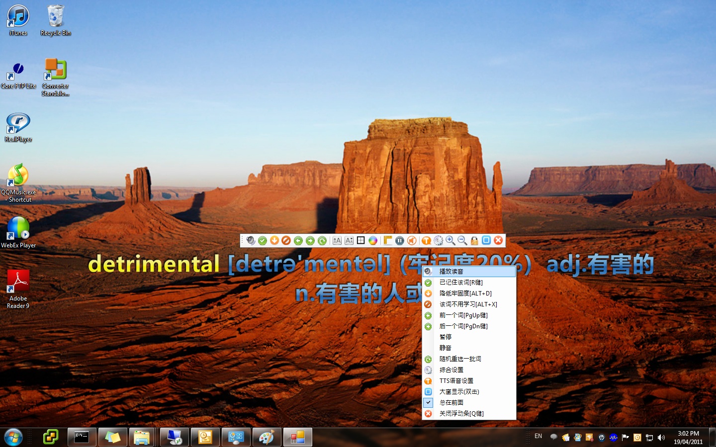 桌面单词通运行视频 之 学习浮动条词汇拼读、中英文混读 (请点击播放按钮) (视频下载或单独播放请点这里)
